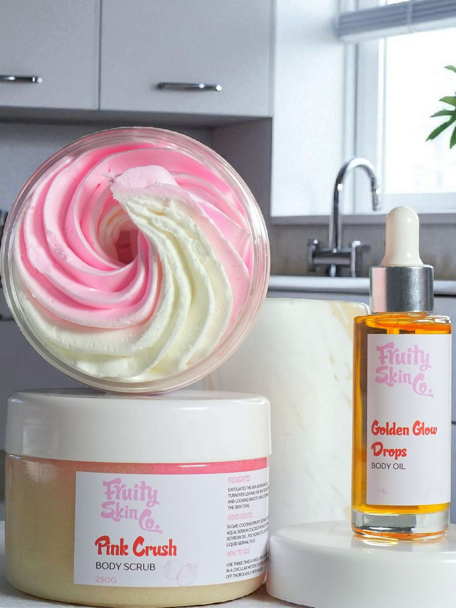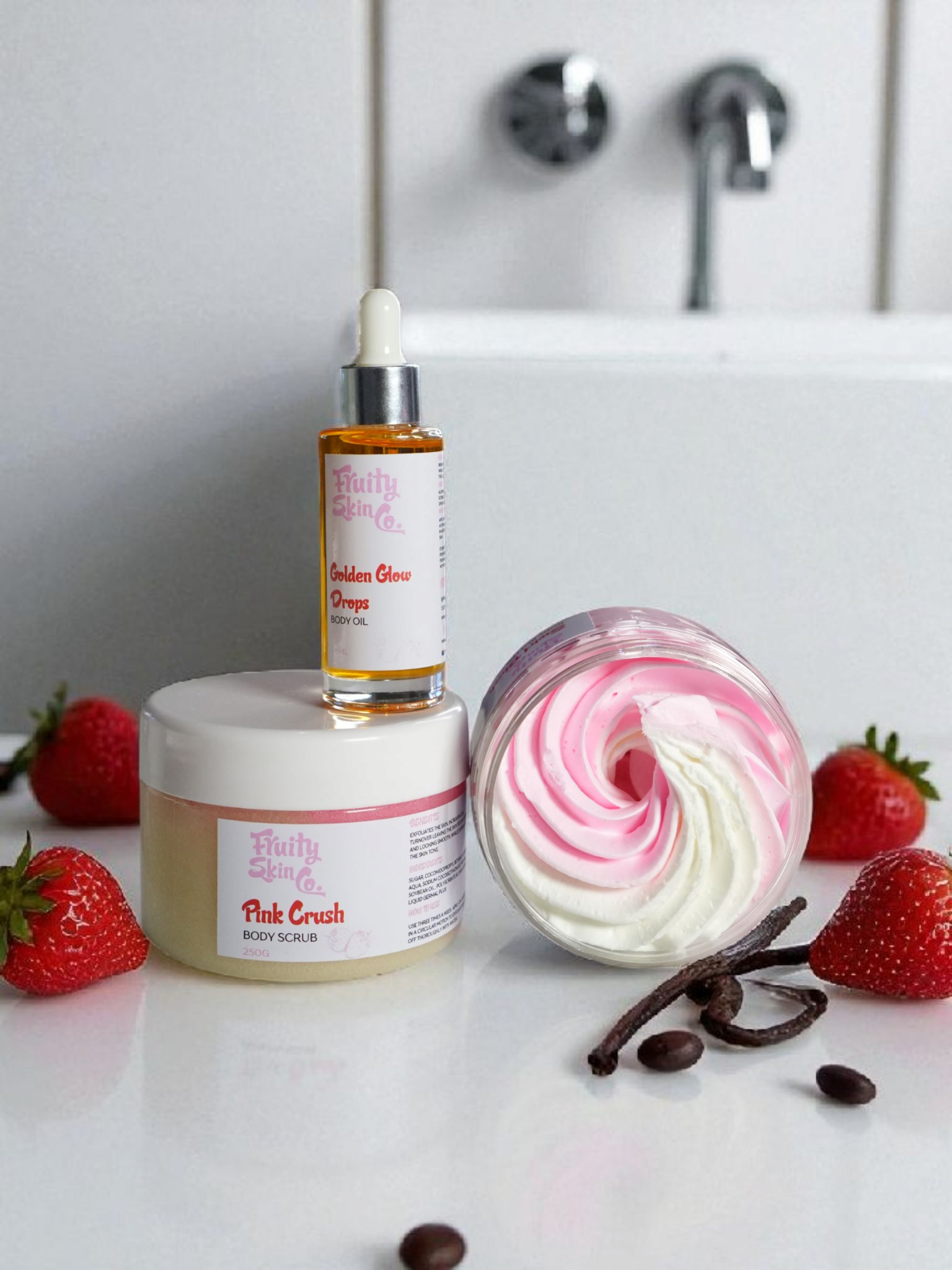 Our Pink Glow Collection works best when used together, layering texture-refining exfoliation, radiance-boosting oils, and deep moisture for visibly healthier-looking skin.